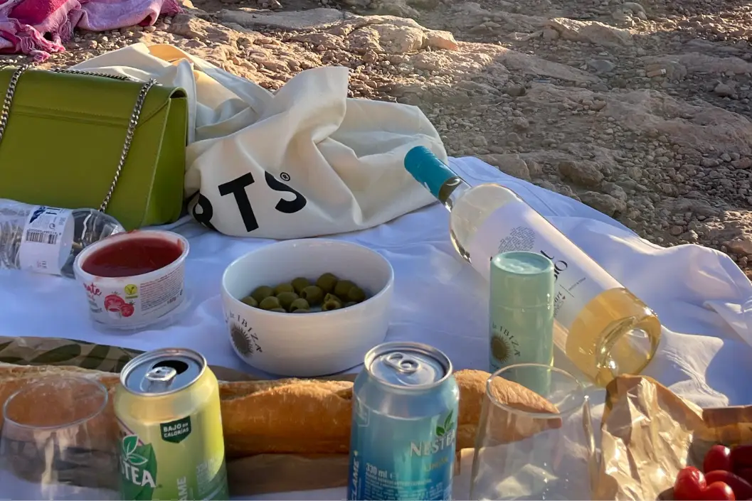 Der zweite Tag stand ganz im Zeichen des Strandhoppings! Morgens ging es direkt zu einem der schönsten Strände der Insel, Cala Comte. Das klare, türkisfarbene Wasser ist perfekt zum Schwimmen und Schnorcheln. Mittags haben wir im Sunset Ashram mit Blick auf das Meer gegessen – ein cooles Strandrestaurant mit entspannten Boho-Vibes.