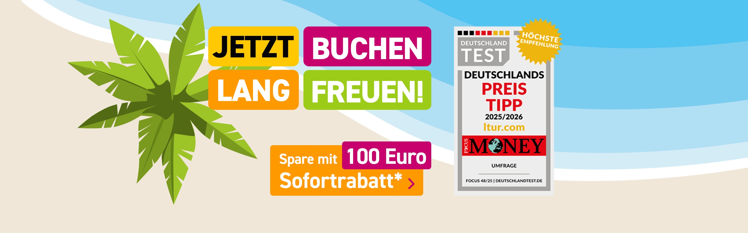 Bei den Pauschalreisen von ltur kannst du dir sicher sein, dass an alles gedacht wurde. Wir finden für dich die besten und preiswertesten Kombinationen aus Hotel und Flug. Bei der Auswahl unserer Hotels gehen wir keine Kompromisse in Sachen Qualität ein. Unsere Produkttester arbeiten ständig daran, den hohen Ansprüchen unserer Kunden gerecht zu werden. Auch deshalb ist ltur bei Last Minute Urlauben und Pauschalreisen der europäische Marktführer.