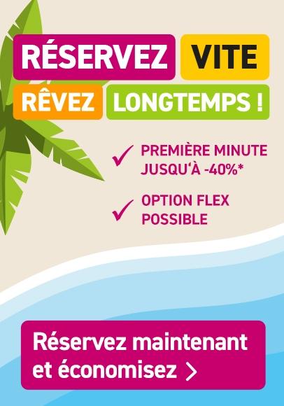 Des réductions intéressantes pour les réservations en première minute sont proposées pour presque toutes les destinations. Parmi elles, les destinations au soleil très prisées comme :